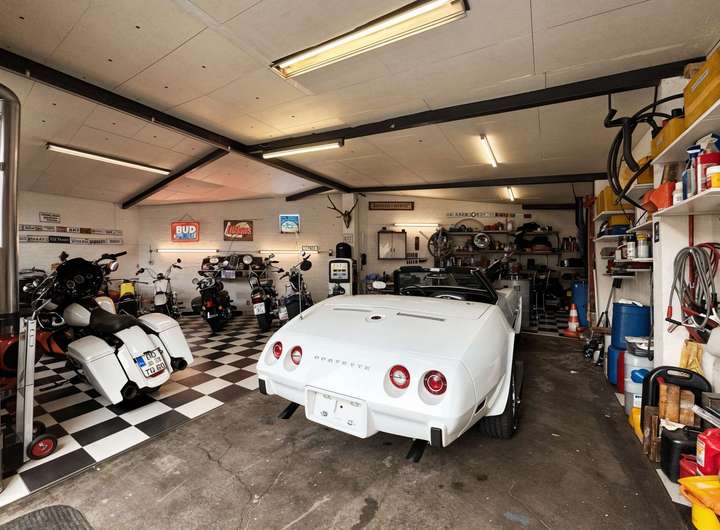 Das historische Einfamilienhaus aus dem Jahr 1903 begeistert mit charmanten Altbauelementen und wird durch ein großzügiges Grundstück mit vielseitig nutzbaren Nebengebäuden ergänzt: eine Halle mit Grube (derzeit als Auto-Showroom genutzt), sechs Garagen, eine Werkstatt sowie ein Büro bieten ideale Voraussetzungen für vielfältige Nutzungsmöglichkeiten. Die gelungene Kombination aus Wohnhaus und funktionalen Flächen macht diese Immobilie besonders attraktiv – insbesondere für Auto- und Motorradliebhaber, Sammler oder passionierte Tüftler, die hier ein einzigartiges Zuhause für ihre Leidenschaft finden.