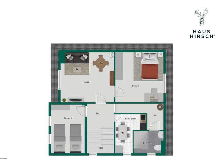 - OG: 3-Zimmer, Pantry-Küche, Duschbad