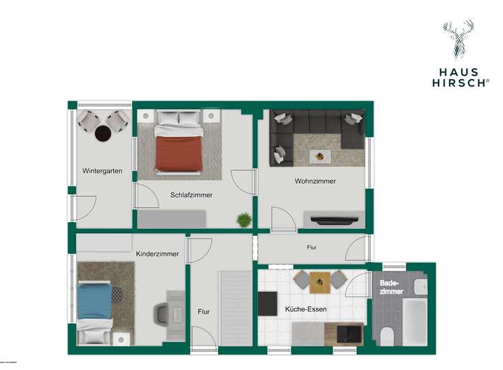 - EG: 3-Zimmer, Wintergarten, Küche und Bad mit Wanne