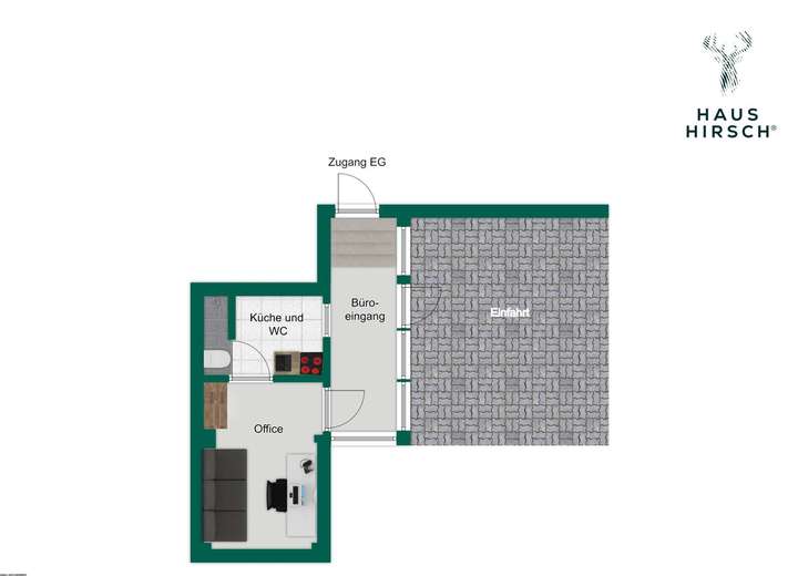 - Büro: Separater Zugang, Büroraum, Küche mit Bad