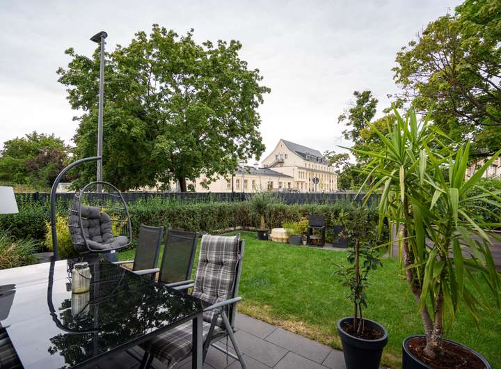 Die großzügige Terrasse mit angrenzendem ca. 60 m² großen Garten lädt zum Entspannen und Verweilen ein. Die hochwertige Einfriedung verleiht Privatsphäre und ein stilvolles Ambiente. Zwei Gartenhütten sowie ein moderner Vorgartenschrank bieten zusätzlichen Stauraum. Ein eigener Außenstellplatz rundet das attraktive Gesamtpaket ab.