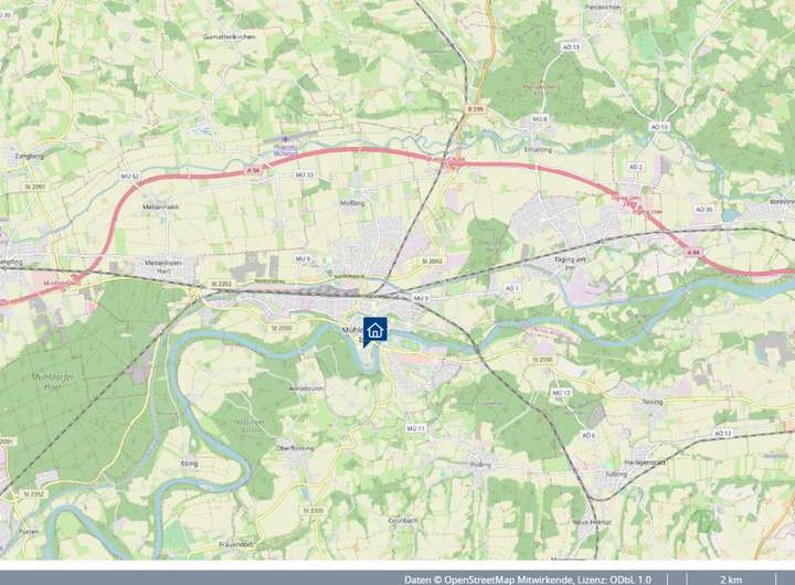 Die Autobahnauffahrt Mühldorf-Nord A 94 ist in ca. 5 Minuten mit dem Auto erreichbar. Die Landeshauptstadt München erreichen Sie von hier in ca. 35 Minuten.