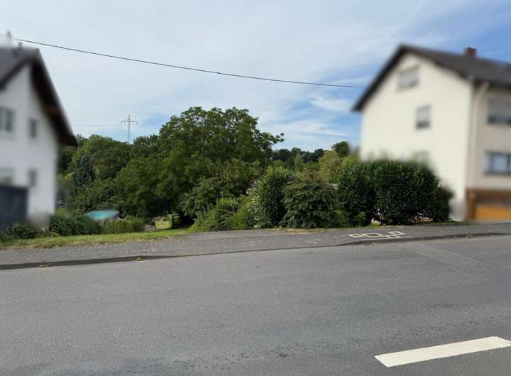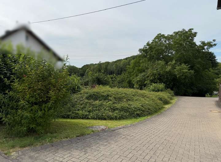 Das Grundstück befindet sich in Kasbach-Ohlenberg, einer kleinen Ortsgemeinde im Landkreis Neuwied. Die Umgebung ist geprägt von grünen Hängen, einigen Wohnhäusern und einem dörflichen Charakter mit viel Natur.