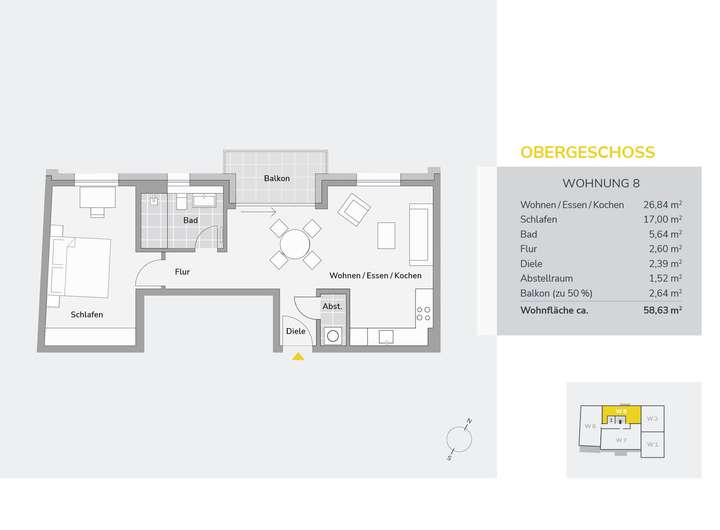 Im Obergeschoss des Neubaus befindet sich diese ansprechende 2-Zimmer-Wohnung, die sich auch hervorragend als Kapitalanlage eignet.