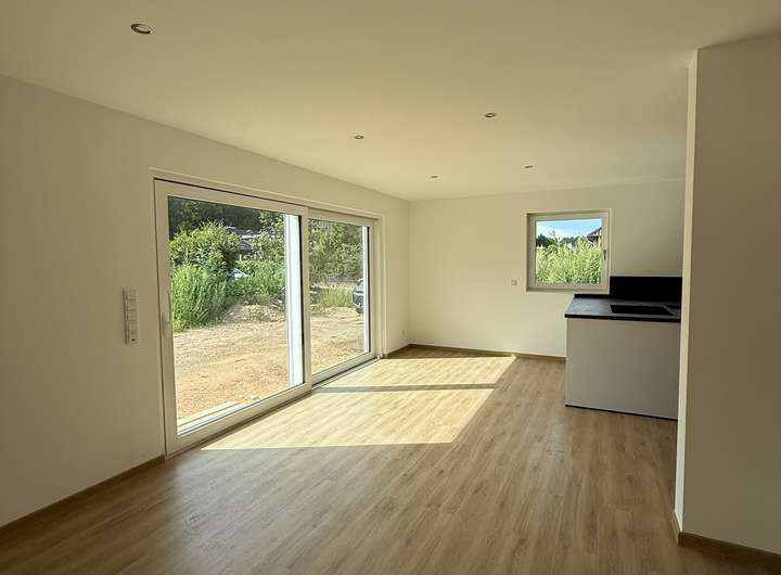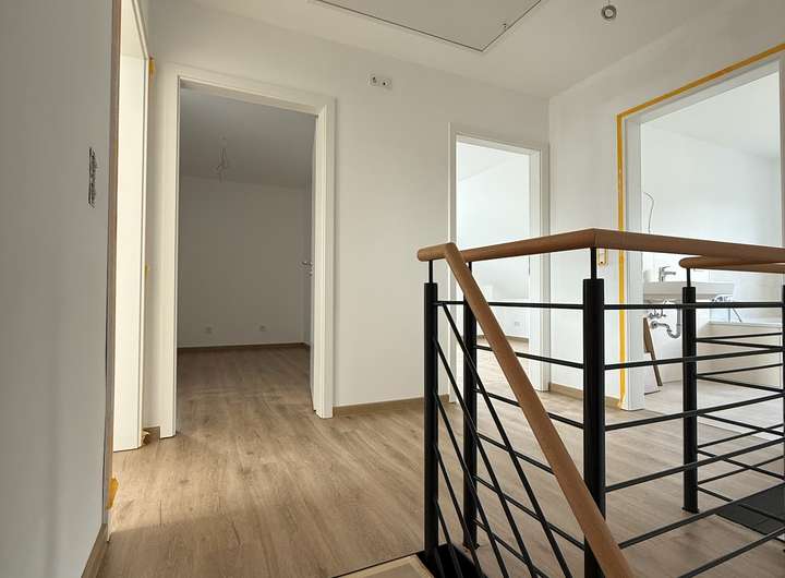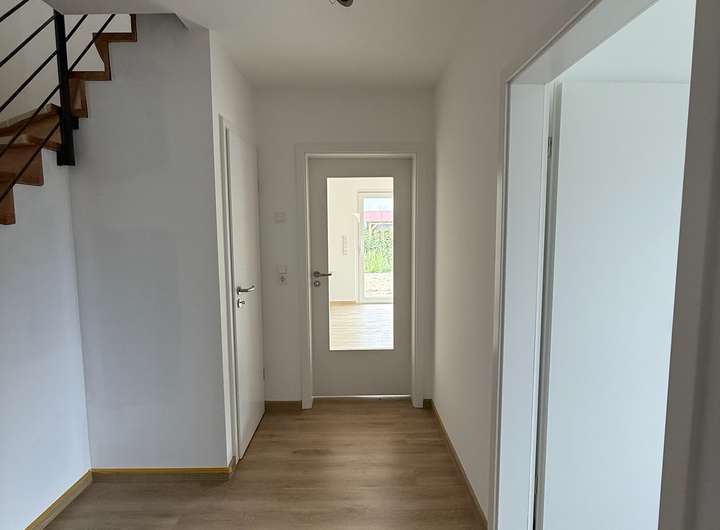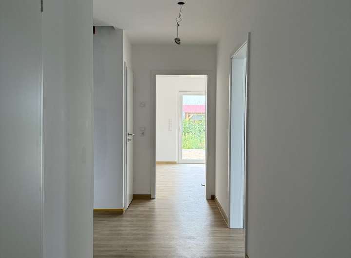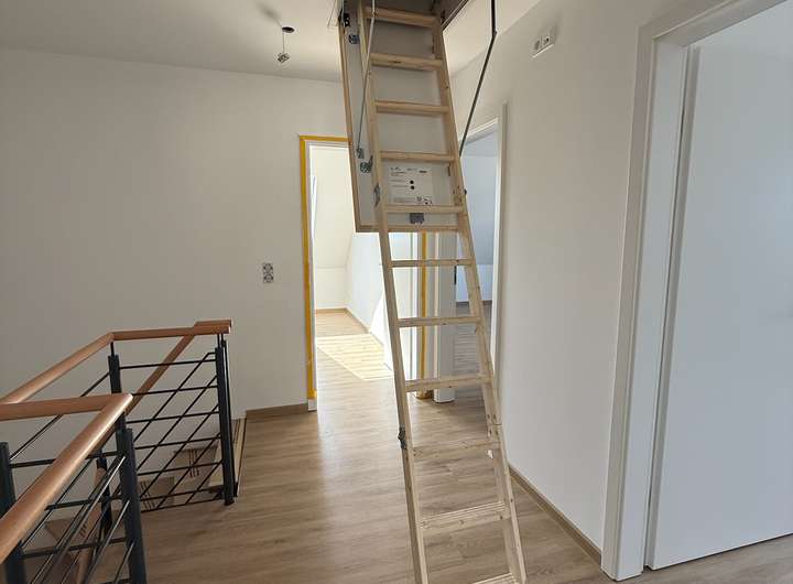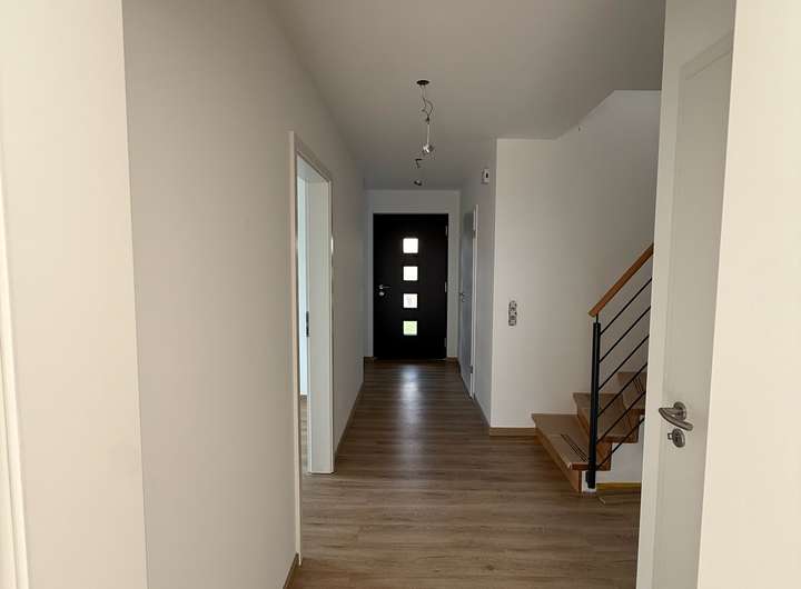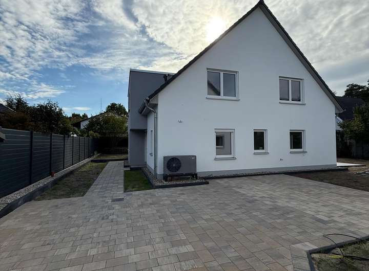 Es handelt sich um einen Erstbezug mit hochwertiger Ausstattung und modernster Haustechnik. Die Haushälfte bietet ca. 126 m² Wohnfläche auf zwei Ebenen sowie einen großzügigen Dachboden. Große Fensterflächen sorgen im gesamten Haus für viel Tageslicht, während die durchdachte Raumaufteilung auch Familien genügend Platz zum Wohnen, Arbeiten und Entspannen bietet. Das Grundstück umfasst ca. 320 m² und bietet mit Terrasse und Garten ideale Voraussetzungen für erholsame Stunden im Freien.