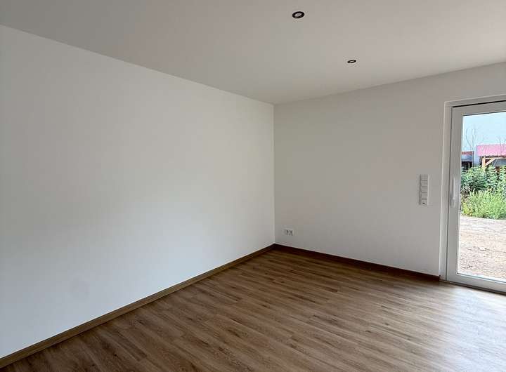 Im Erdgeschoss befindet sich ein Gäste-Badezimmer inkl. Dusche, ein Hauswirtschaftsraum, ein Abstellraum, ein Gästezimmer/ Arbeitszimmer sowie der geräumige Wohn-Essbereich mit einer Designer-Küche, integrierter Deckenbeleuchtung und einer großen Glasschiebetür, die direkt auf die Terrasse und in den Garten führt. Der Garten bietet viel Spielraum für eine eigene kreative Gestaltung.