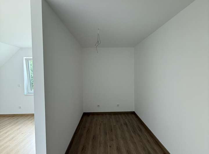 Im Obergeschoss befindet sich ein großes Familienbadezimmer mit einer Badewanne und Dusche, zwei Kinderzimmer sowie ein Schlafzimmer mit einem Ankleidezimmer.