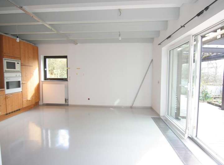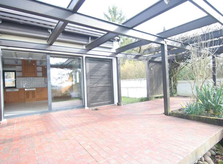 Sehr schön ist die große Schiebetür, die zur riesigen Süd-West Terrasse geöffnet werden kann.