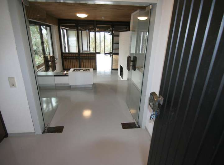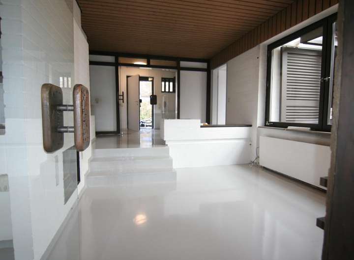 Achtung: im Wohnbereich des Hauses wurde von den dunklen Klinker-Fliesen in einen neuen hellen grauen Boden umgearbeitet. Also der neue Boden ist grau.