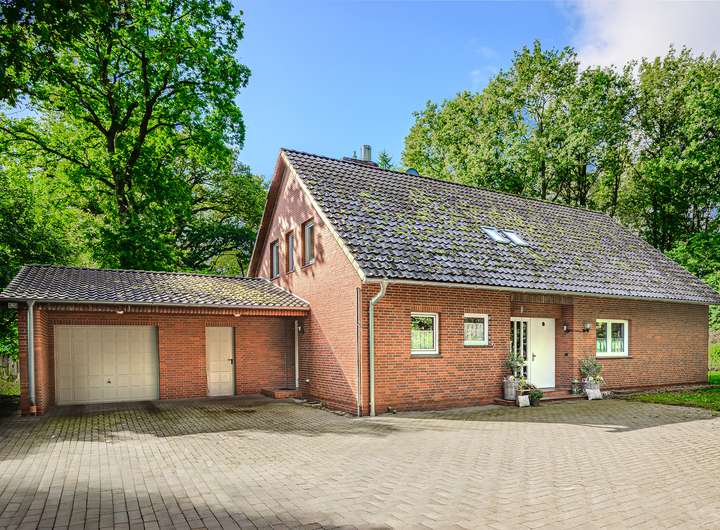Inmitten des Naturparks Wildeshauser Geest erwartet Sie ein charmantes Einfamilienhaus auf einem rund 8.000 m² großen Waldgrundstück – ein Rückzugsort für alle, die Privatsphäre, Ruhe und echte Naturerlebnisse suchen. Die Immobilie liegt in vollständiger Alleinlage am Ende einer ca. 50 m langen, privaten Zufahrt. Das Grundstück ist von außen nicht einsehbar – weder vom Weg noch von Nachbargrundstücken. Diese abgeschirmte Lage bietet ein Höchstmaß an Rückzug, Privatsphäre und Ruhe. Regelmäßige Wildtierbesuche – etwa Rehe, Hasen und zahlreiche Vogelarten – sind hier keine Seltenheit, sondern Teil des täglichen Naturpanoramas. Das 1978 erbaute Haus wurde zwischen 2010 und 2013 teilsaniert (u.a. Velux-Fenster, Gäste-WC, Heizungsanlage, Klärsystem) und überzeugt mit einer durchdachten Raumaufteilung: 7 Zimmer, ca. 180 m² Wohnfläche, zwei Bäder sowie Gäste-WC, Teilkeller, Balkon und eine überdachte Südterrasse bieten viel Platz für individuelle Wohnwünsche. Große Panoramafenster, ein potenzieller Kaminanschluss mit Edelstahlschornstein, Rollläden (teilweise elektrisch), eine Landhausküche und ein Ankleidezimmer mit Einbauschränken runden das Angebot ab. Der angrenzende Geräteraum und die Garage mit praktischem Dachüberstand sorgen auch bei Regen für einen trockenen Zugang ins Haus. Die Anbindung ist trotz der naturnahen Lage hervorragend: Einkaufsmöglichkeiten, Schulen, Ärzte und Bahnhöfe sind schnell erreichbar, ebenso wie die A1 und A29. Die Region bietet mit Rad- und Wanderwegen sowie Naherholungsgebieten wie den Ahlhorner Fischteichen zahlreiche Freizeitmöglichkeiten. Ein außergewöhnliches Wohnangebot für Naturliebhaber mit Anspruch. ???? Jetzt vollständiges Exposé anfordern oder direkt Kontakt aufnehmen – wir freuen uns auf Ihre Anfrage!