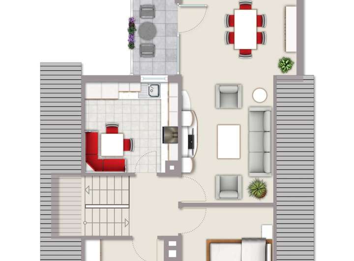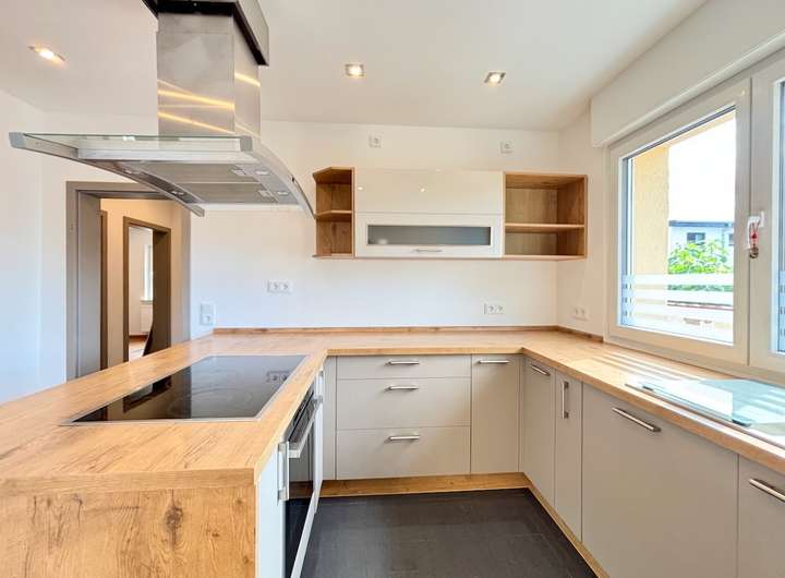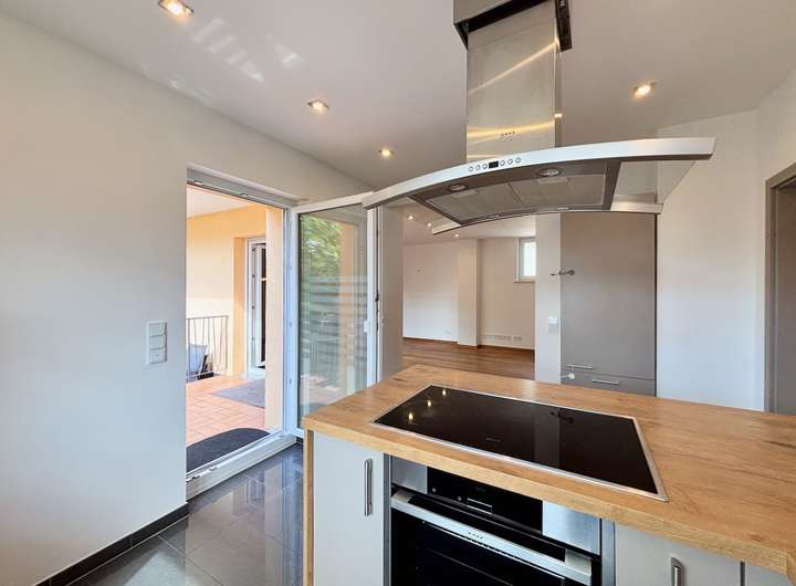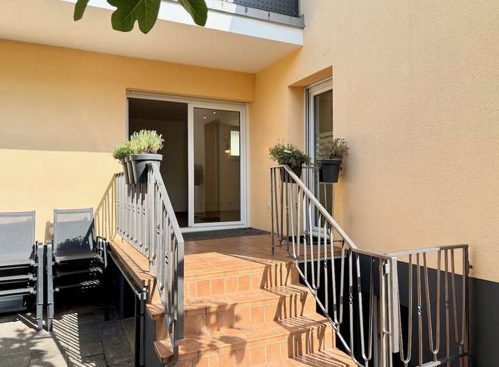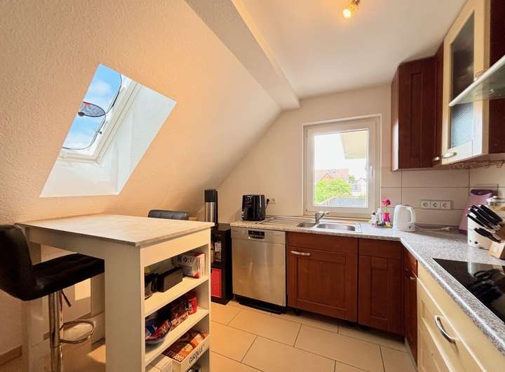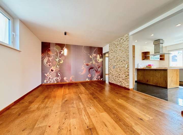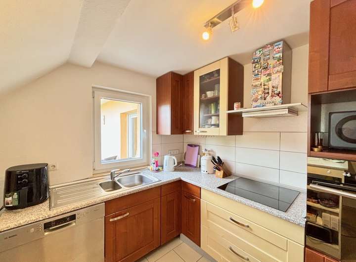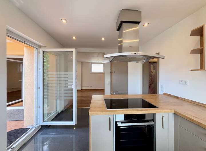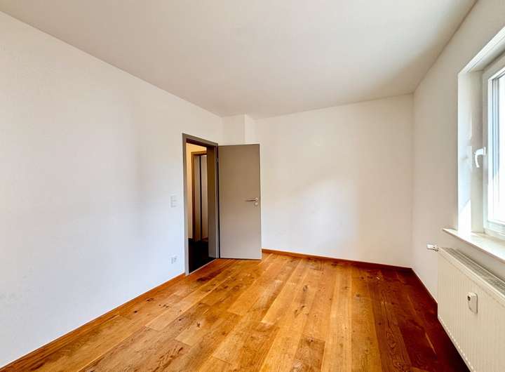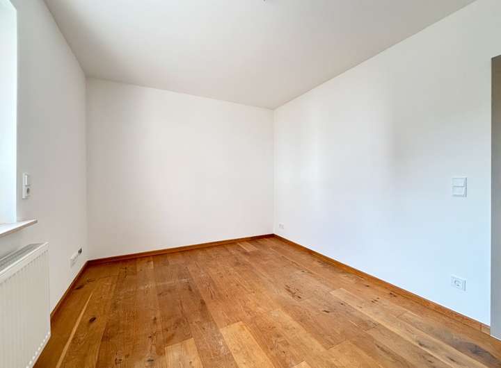 Im Obergeschoss erwartet Sie eine charmante 2-Zimmer-Wohnung mit ca. 67 m², einem großzügigen Wohn-Essbereich mit Zugang zum Balkon, einem großen Schlafzimmer mit Ankleide, einer modernen Küche sowie einem komfortablen Bad mit Waschmaschinenanschluss.