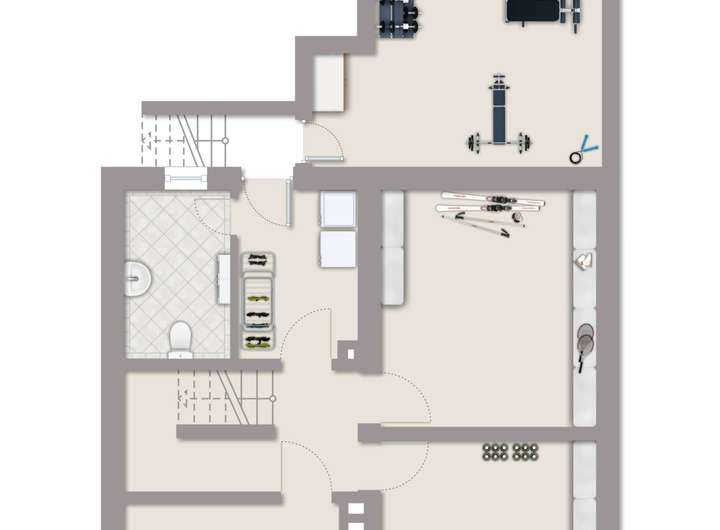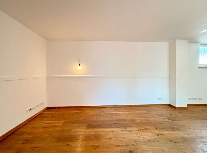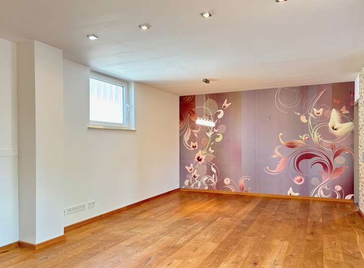 Der voll unterkellerte Bereich bietet zusätzlichen Stauraum, ein Gäste-WC, einen Hauswirtschaftsraum und einen großen, ausbaufähigen Raum mit direktem Zugang zum Hof – ideal für Hobby, Büro oder Gästebereich. Die vorhandene Gas-Zentralheizung (Bj. ca. 1990) lässt sich potenzill gegen eine Wärmepumpe tauschen.