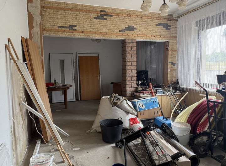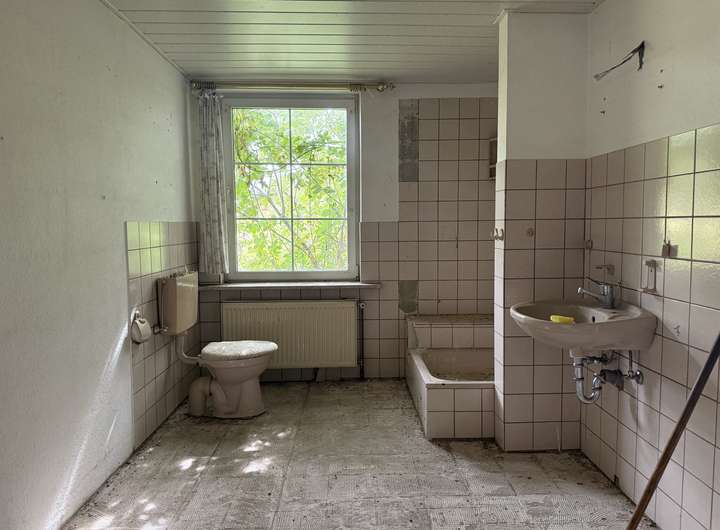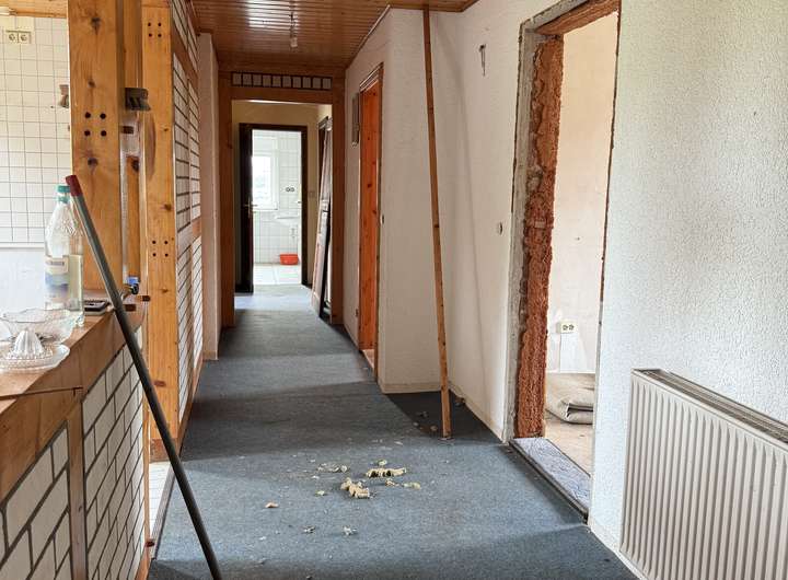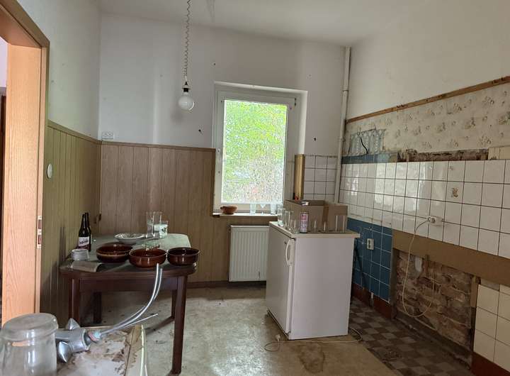 Wohnzimmer, Schlafzimmer, Küche, Bad mit Dusche, HWR inkl. Heizung (DEFEKT) + Flur (schlechter Zustand)