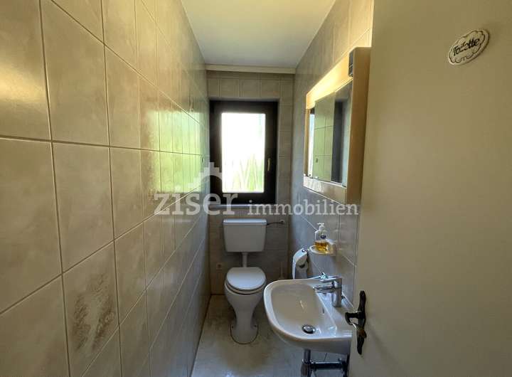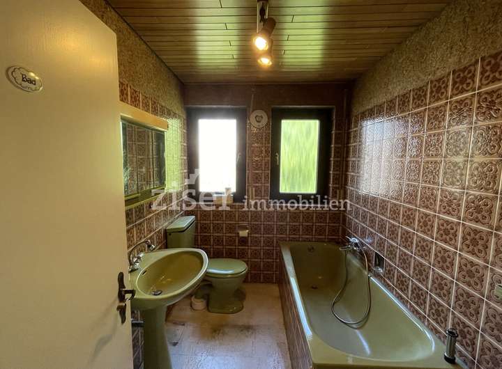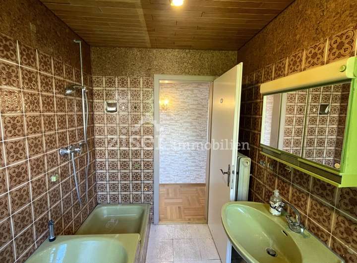 Die im Kaufpreis enthaltene Küche fügt sich harmonisch ins Raumkonzept ein. Das Tageslichtbad ist mit Dusche, Badewanne und Waschbecken ausgestattet und entspricht einem baujahresgemäßen Zustand. Ein separates Gäste-WC mit Waschbecken ergänzt den praktischen Grundriss.
