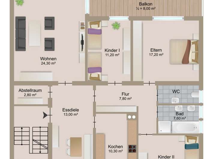 Diese gut geschnittene 4-Zimmer-Wohnung in einem Mehrfamilienhaus mit sieben Einheiten und einer Wohnfläche von ca. 109 m² bietet Familien wie auch Paaren ein ideales Zuhause. Die großzügige Aufteilung schafft ein angenehmes Wohnambiente und genügend Platz für unterschiedliche Bedürfnisse.