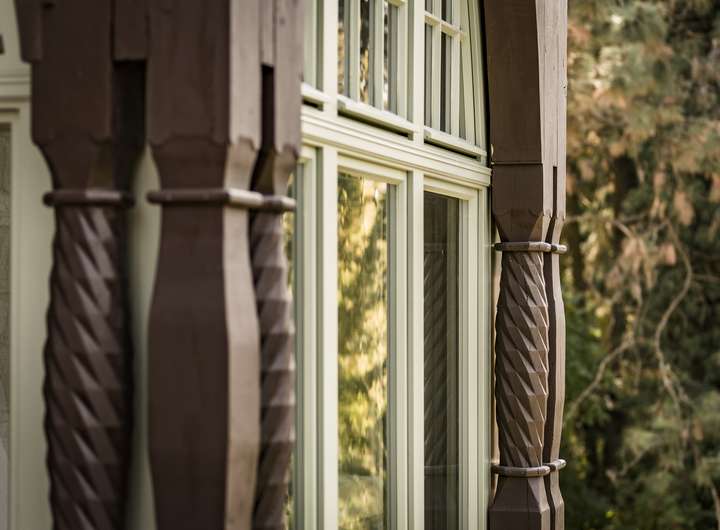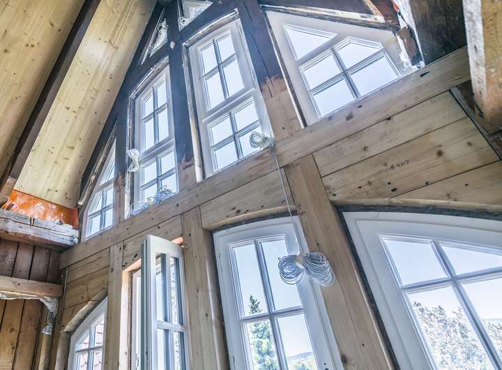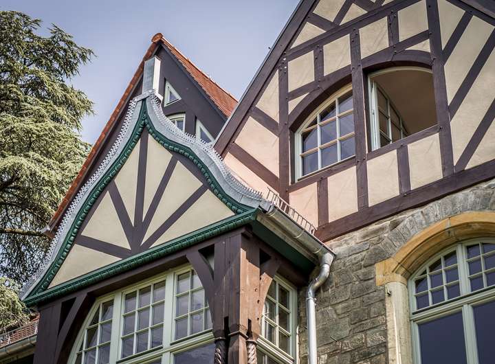 Das gesamte Dach wurde gerade liebevoll erneuert und saniert. In diesem Zuge wurden auch die aufwendigen Zierelemente und das Fachwerk saniert und in teils aufwendiger Handarbeit rekonstruiert.