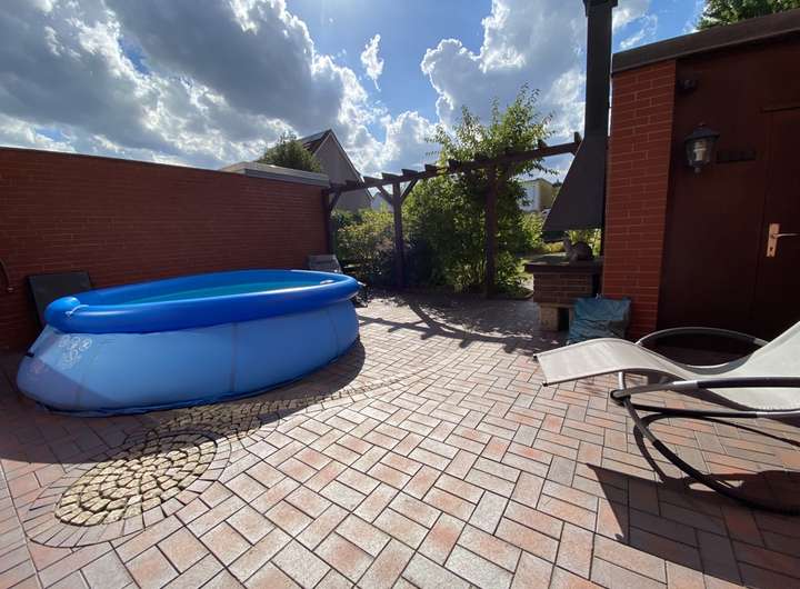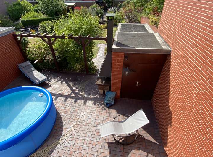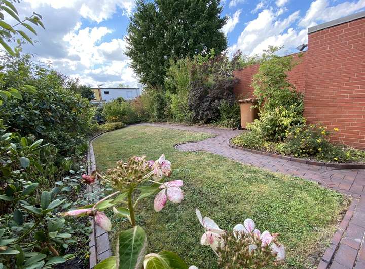 Dieses solide gebaute und hervorragend gelegene Reihenmittelhaus in Stuhr könnte schon bald Ihr neues Zuhause sein. Die Immobilie wurde 1971 in massiver Bauweise errichtet und fortlaufend im Innenbereich sowie im Garten instandgehalten. Auf zwei Etagen wartet eine Wohnfläche von ca. 141 qm auf Sie. Die Küche im EG lässt sich problemlos mit dem großen Wohn- / Esszimmer verbinden. Vom Wohnzimmer aus gelangen Sie auf die Terasse und in den Garten. Ergänzt wird das Erdgeschoss durch ein großzügiges Büro, ein Gäste WC, eine Werkstatt und einen zusätzlichen Abstellraum. Im Obergeschoss warten drei Zimmer und ein Vollbad auf Sie. Ein Dachfenster im Flur sorgt für Helligkeit. Vom Balkon aus haben Sie einen schönen Blick auf Ihren Garten. Das Haus wird mit einer 2010 erneuerten Gastherme beheizt. Eine Klimaanlage sorgt im Sommer für einen angenehm kühlen Schlaf. Die Weru Fenster sind 5-fach verglast und sind mit einer Spaltlüftung versehen. Im Jahr 1984 wurde das Haus verklinkert und der Garten neu angelegt und umzäunt. Alle Fenster sind zudem alarmgesichert und auch Glasbruch überwacht. Elektrische Außenrolläden und Markisen ergänzen dieses tolle Immobilienangebot. Ebenfalls erwähnenswert ist das 2014 erneuerte Flachdach. Den Garten können Sie auch von einem Stichweg aus erreichen, sodass Sie Ihr Fahrrad mit Leichtigkeit in einem der Schuppen abstellen können. Die zwei vorhandenen Garagen sind mit elektrischen Toren ausgestattet, welche 2007 und 2013 erneuert wurden. Die Garagen sind bereits im Kaufpreis enthalten.