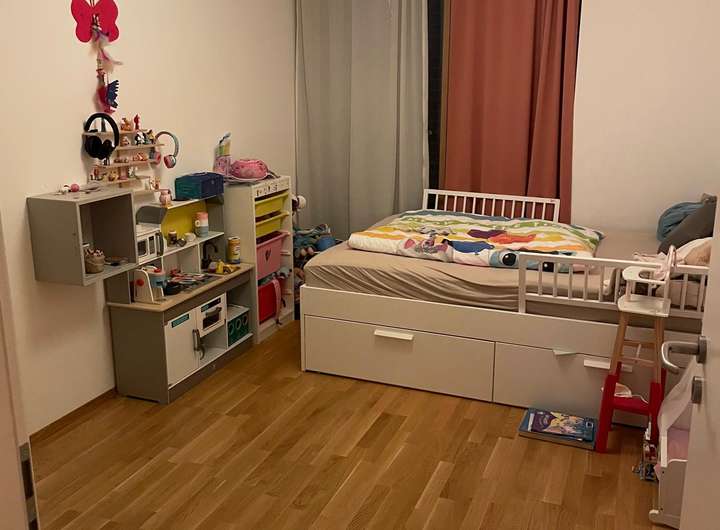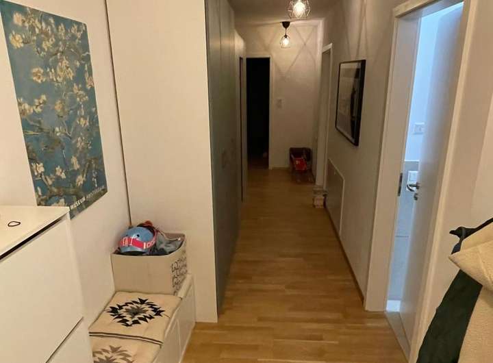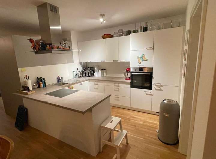 Eingangsbereich, offenes Wohnen-Essen-Küche (hochwertige Einbauküche) mit Terrasse, Gäste-WC, zwei Kinderzimmer, Bad mit Dusche, WC, zwei Waschbecken und Badewanne, Schlafzimmer, Abstellkubus gemeinschaftlicher WM-und Trockenraum, gemeinschaftlicher Fahrrad - und Müllraum, Hausmeisterservice, Tiefgarage (E-Anschluss möglich)