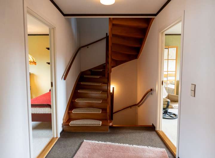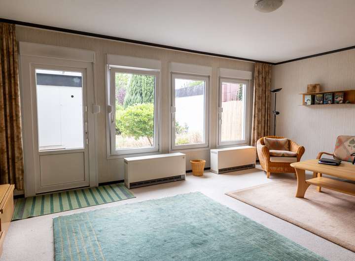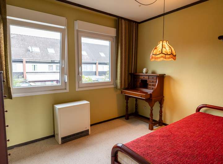 Dieses gepflegte Reihenmittelhaus in ruhiger Wohnlage überzeugt mit einer durchdachten Raumaufteilung und zahlreichen Modernisierungen in den letzten Jahrzehnten. Im Erdgeschoss befinden sich eine Küche, ein Gäste-WC, ein Abstellraum sowie das helle Wohnzimmer mit Zugang zur Terrasse, die dank Markise zusätzlichen Komfort bietet. Das Obergeschoss bietet drei Zimmer sowie ein überarbeitetes Vollbad (2003 erneuert), während im Dachgeschoss zwei weitere Zimmer und ein Abstellraum zur Verfügung stehen – ideal für Kinder, Gäste oder Homeoffice. Das Haus wurde kontinuierlich instand gehalten: 1995 Sanierung der Fassade, Einbau neuer Fenster im Erd- (1995) und Obergeschoss (1996), 1998 neue Nachtspeicheröfen im Wohnzimmer und einem OG-Zimmer, 2002 Einbau neuer Dachfenster, 2004 Erneuerung der Haustür mit Vordach, sowie weitere Verbesserungen wie Durchlauferhitzer (2007) und Rollläden. Eine Garage auf dem nahegelegenen Garagenhof sowie ein massiver Geräteschuppen runden das Angebot ab. Ein solides Zuhause mit viel Platz und Potenzial für Familien!
