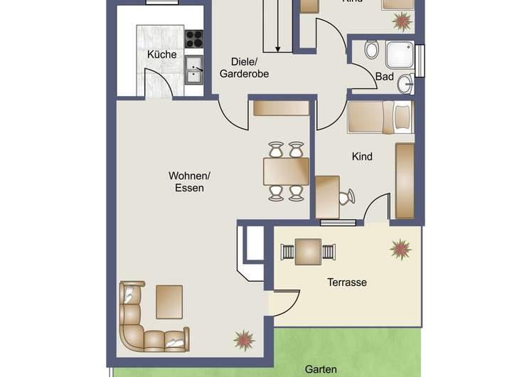 Die voll ausgestattete Einbauküche lädt zum gemeinsamen Kochen ein und ist der perfekte Ort für kulinarische Kreationen. Genießen Sie die entspannte Atmosphäre auf dem Balkon oder Ihrer privaten Terrasse mit angrenzendem Garten.