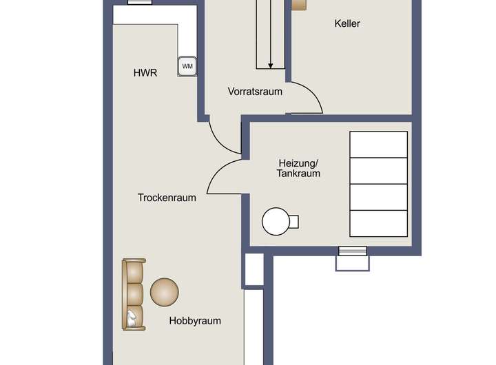 Ein weiterer Pluspunkt des Hauses ist der großzügige Keller, der zusätzlichen Stauraum und einen Hobbyraum bietet.