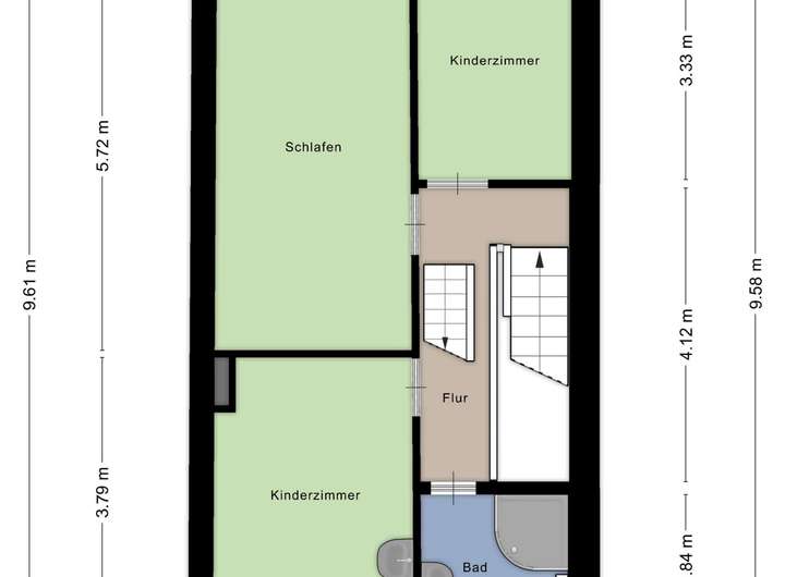 Obergeschoss: Im Obergeschoss befinden sich zwei Kinderzimmer, ein Elternschlafzimmer, sowie das Tageslichtbadezimmer.