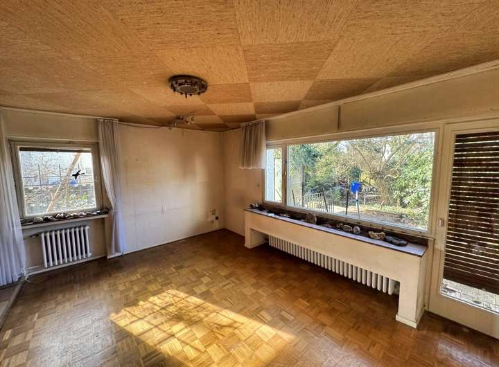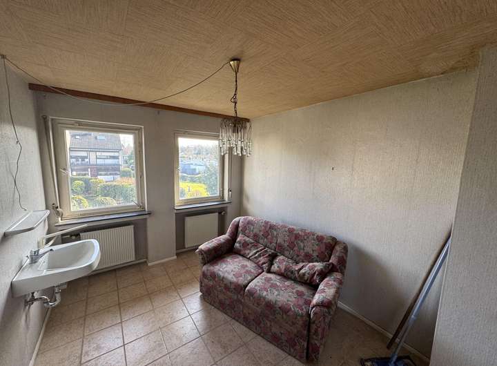 Die ca. 1961 erbaute Doppelhaushälfte befindet sich in verkehrsberuhigter Wohnlage inmitten einer beliebten Wohngegend. Es verfügt über insgesamt ca. 90m² Wohnfläche zzgl. ca. 25m² Nutzfläche im Dachgeschoss, sowie weiterer Nutzfläche im Keller.