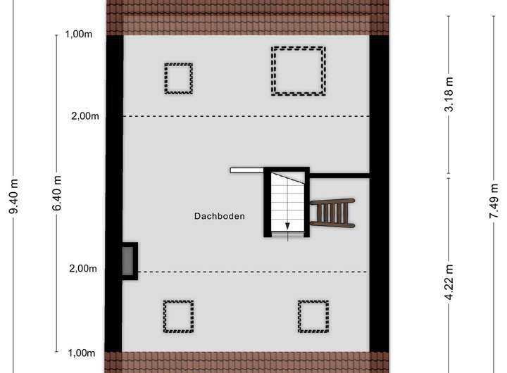 Dachgeschoss: Das Dachgeschoss hat Potenzial zur Raumerweiterung. In der direkten Umgebung wurde dies bereits gemacht.