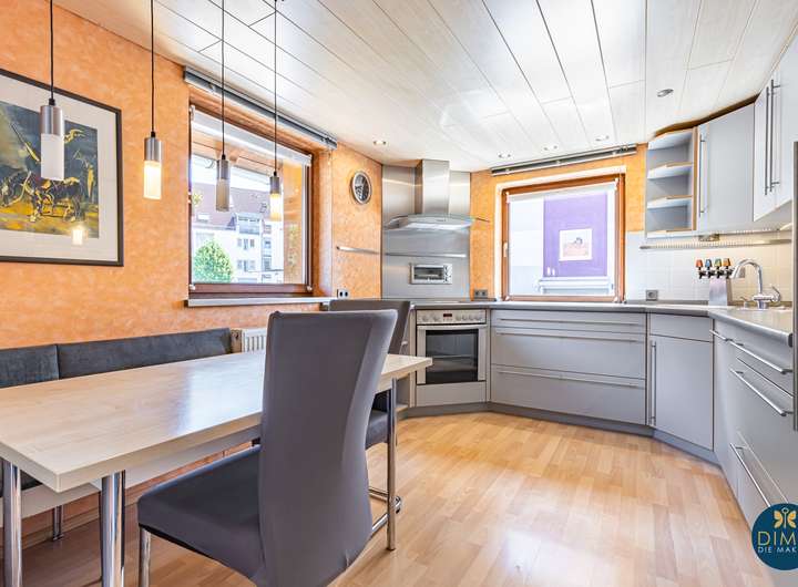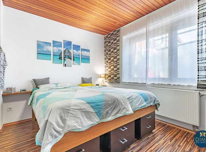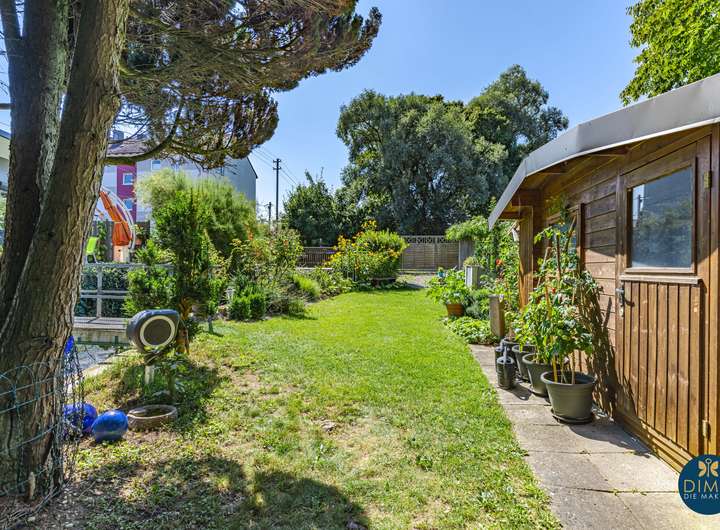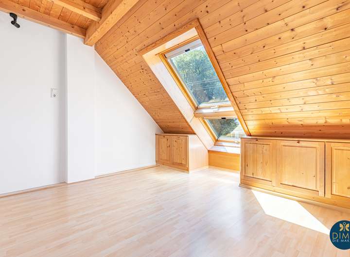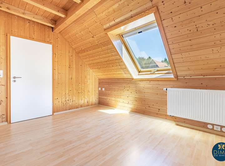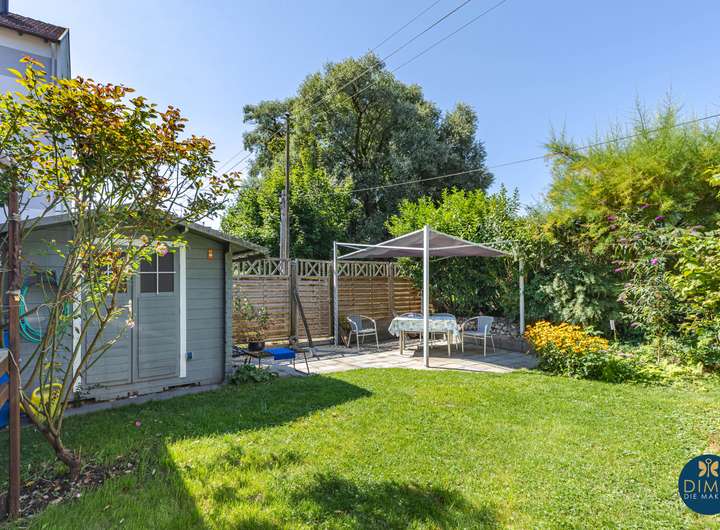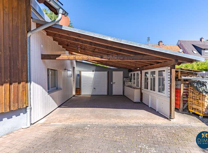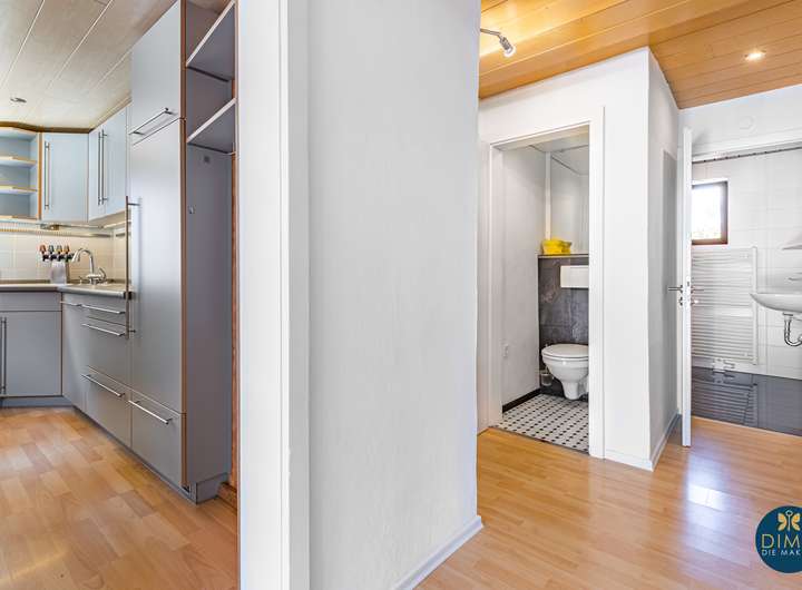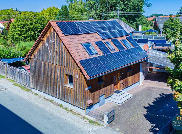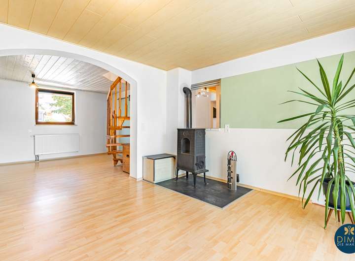 Das vordere Wohnhaus mit seiner charaktervollen Holzfassade strahlt Behaglichkeit und Wärme aus. Es verfügt über eine gepflegte Einbauküche, ein helles Tageslichtbad (2024 eingebaut) sowie zusätzliche WCs. Der offene Wohnbereich mit Kaminofen und Wendeltreppe führt in das ausgebaute Dachgeschoss, das dank großzügiger Dachflächenfenster viel Licht bietet. Praktische Einbauschränke, eine Terrasse sowie ein Gartenhaus runden das Bild ab. Die nachträgliche Dämmung von Dach, Keller und Außenwänden sorgt für zeitgemäßen Wohnkomfort.