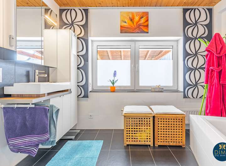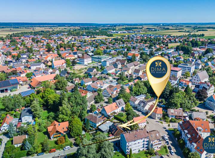 Die Lage verbindet städtischen Komfort mit naturnaher Idylle. Einkaufsmöglichkeiten, Schulen, Kindergärten und Ärzte sowie die Wertachklinik befinden sich in bequemer fußläufiger Entfernung.