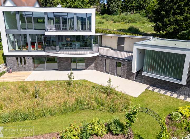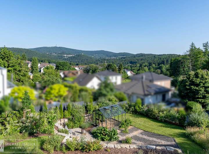 Willkommen in Ihrem Refugium am Großen Feldberg – ein architektonisches Meisterwerk, das Luxus und Natur vereint. Mit ca. 305 m² Wohnfläche und zusätzlichen Nutzflächen von ca. 90 m² bietet dieses Anwesen ein Lebensgefühl der Entschleunigung. Die unverbaubare Aussicht und lichtdurchfluteten Räume laden Paare oder kleine Familien ein, genau hier ihr Paradies zu finden. Schon beim Betreten spüren Sie die Magie: Über die elegante und neugierig machende Designtür oder die Doppelgarage gelangen Sie in den offenen Wohn-Essbereich mit Gaggenau-Küche. Raumhohe Fenster und ein fast sechs Meter hoher Luftraum schaffen Weite, während ein Kamin Wärme spendet. Die Natur fließt durch Panoramafenster ins Haus, smarte Raffstores sorgen für Komfort. Eine stilvolle Metalltreppe führt Sie sanft nach oben. Im Obergeschoss erwartet Sie eine luftige Galerie, ideal als inspirierendes Arbeitszimmer mit Blick auf die sanften Hügel des Taunus. Das Schlafzimmer mit en-suite Bad – freistehende Badewanne, ebenerdiger Dusche mit raumhoher Glasabtrennung, Doppelwaschbecken – und Balkon verspricht Ruhe. Eine maßgefertigte Ankleide bietet Ordnung und Eleganz. Im Untergeschoss entfaltet sich ein Wellness-Paradies: Eine Wendeltreppe führt in den Spa-Bereich mit Terrassenzugang und luxuriöser Sauna unter einem Sternenhimmel. Ein Bad mit Regendusche, ein Vorratsraum mit Weinkühler und ein flexibles Gäste- oder Kinderzimmer ergänzen den Komfort. Der ca. 41 m² große Fitnessraum lässt sich auch als Heimkino nutzen. Der Garten ist ein Naturidyll: Gepflegter Rasen, wilde Blumenwiesen, Obstbäume und ein Gewächshaus laden zur Selbstversorgung ein. Auf großzügigen Terrassen, Freisitzen und Balkonen genießen Sie die Weite der umliegenden Natur. Ein Jacuzzi oder Badezuber ist optional integrierbar. Mit sechs Zimmern ist dieses Anwesen mehr als ein Zuhause – es ist ein Gefühl von Freiheit, Luxus und Geborgenheit. Lassen Sie sich verzaubern und investieren Sie in Ihre Zukunft.