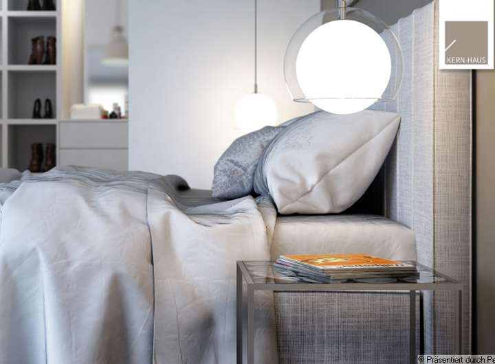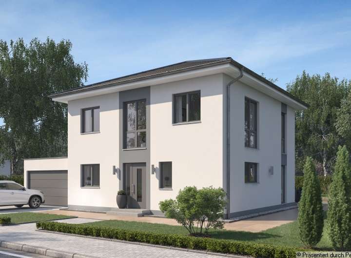 Lichtdurchflutete Stadtvilla – für das persönliche Wohnglück. Die Stadtvilla Certo von Kern-Haus überzeugt mit 161 m² Wohnfläche, die sich auf 4 Zimmer aufteilt. Bereits der Eingangsbereich begrüßt Sie mit schönen Details, wie einer Nische für eine Garderobe und eine Glastür, die Sie ins Herzstück des Hauses führt: der offene Wohnbereich mit zahlreichen Fenstern. Im Wohnerker findet eine schöne Couch Platz – der helle Raum eignet sich zum Entspannen am Tag und auch am Abend. Von hier führt der Weg auch in den Garten. Daran schließt der Esstisch in einer ebenfalls mit Fenstern versehenen Ecke an. Hier kommt die Familie gerne zusammen. Offen gestaltet sich dann die Küche, die individuell planbar ist. Für weitere Abstellmöglichkeiten befindet sich eine Speisekammer an der Rückwand der Küche. Abgerundet wird das Erdgeschoss durch ein Gäste-WC und einen Hauswirtschaftsraum. Über eine u-förmige Treppe gelangen Sie ins Obergeschoss der Stadtvilla Certo. Hier befinden sich zwei Kinderzimmer, ein Familienbad und der Elternbereich mit Ankleide und eigenem Balkon. Der Balkon kann durch den Erker im Erdgeschoss perfekt positioniert werden. Hier fühlt man sich wohl! Dieses Haus wird nach Ihren individuellen Wünschen geplant und ausgestattet!