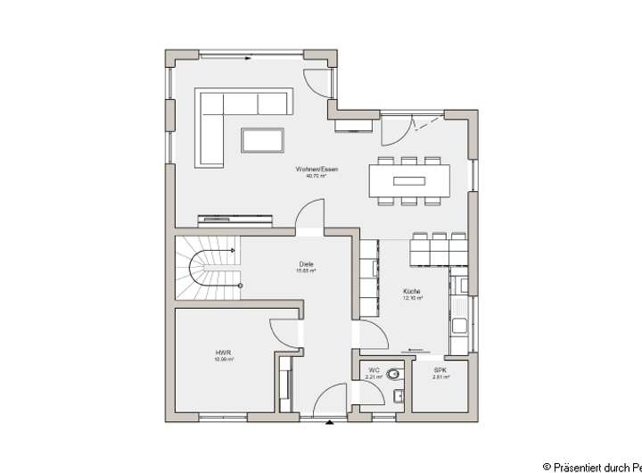 4 Zimmer, offene Küche, Diele, Flur, Bad, WC, Ankleide, Hauswirtschaftsraum, Speisekammer, Balkon Das gezeigte Traumhaus im Überblick: + Schlüsselfertiges Massivhaus im Sinne der Ausstattungsbeschreibung "Edition 25" + Zukunftsorientierte Energieausstattung in Form einer Luft-Wasser-Wärmepumpe und Fußbodenheizung sowie einer kontrollierten Wohnraumlüftung mit Wärmerückgewinnung + Inklusive Bodenplatte Beste Markenausstattung in jedem Kern-Haus: + Zimmermannsmäßiger Dachstuhl aus Konstruktionsvollholz + Dacheindeckung mit Betondachsteinen von Braas + Hochwertiger Kunstharz-Außenputz für eine langlebige Fassade + Vollständige Badausstattung von Villeroy & Boch mit Badewanne und flacher Duschwanne sowie einer Echtglasduschkabine + Fliesen von Villeroy & Boch in Bad und WC + Haustür mit 5-fach-Sicherheitsverriegelung + Erstklassige Innentüren der Marke Herholz + Fenster mit 3-Scheiben-Wärmeschutzverglasung und Rollläden + Stahl-Holz-Treppe mit individueller Farbgestaltungsmöglichkeit + Vollständige und überdurchschnittliche Elektroausstattung inklusive Klingelanlage und Netzwerkdosen + Rauchmelder für Ihre Sicherheit + Alle Leistungen aus einer Hand + Alle Planungs- und Architektenleistungen + Einsatz regionaler Handwerksbetriebe + Baubegleitende 5-Phasen-TÜV-Prüfung und Blower-Door-Test + Individuelle Anpassung auf Ihre Bedürfnisse + Auf Wunsch mit Keller erhältlich + Auf Wunsch mit weiteren Energietechniken erhältlich