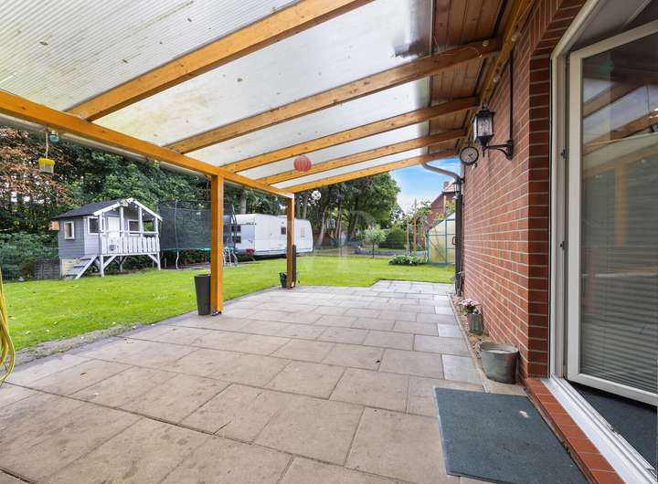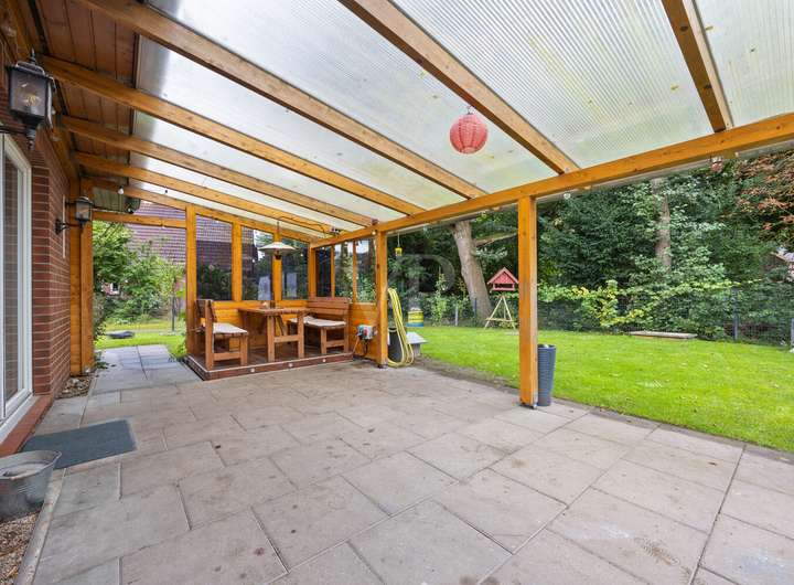 Willkommen im neuen Familienmittelpunkt. Dieses 2007 in Klinkerbauweise errichtete Einfamilienhaus mit südwestlicher Ausrichtung bietet auf rund 125 m² Wohnfläche eine durchdachte Bühne für den Familienalltag. Morgens Ranzen schnappen und losgehen: Kindergarten und Grundschule liegen direkt nebenan, die Wege sind kurz und planbar. Das etwa 670 m² große Grundstück überzeugt mit einem einfach zu pflegenden Garten und einer überdachten Südwest-Terrasse mit Sitzecke, deren Überdachung samt Markise 2022 erneuert wurde. Hier klingt der Tag mit Sonne bis in den Abend aus.