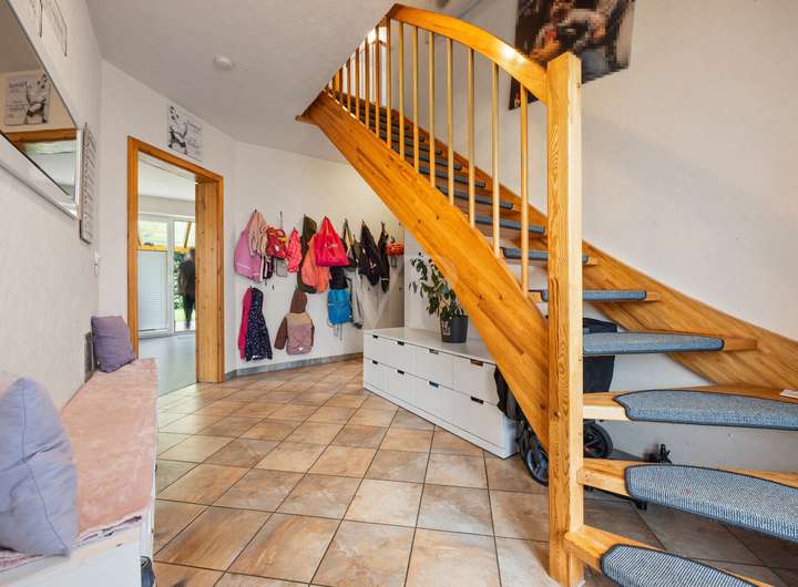 Dieses Zuhause verbindet planbare Wege, funktionale Räume und warme Wohnatmosphäre, genau die Mischung, die Familien und werdende Familien sich wünschen.