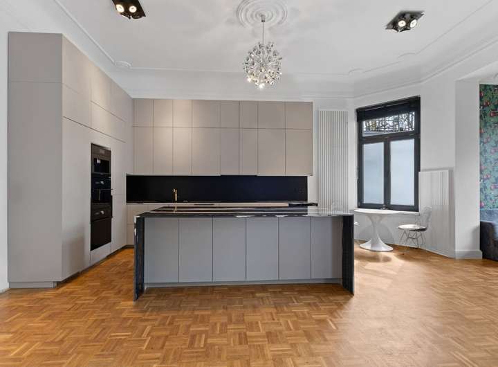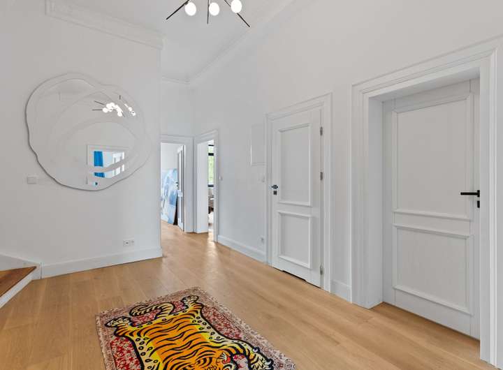 - Erhaltener Altbaucharakter durch hohe Decken, gepflegte Stuckelemente und Eichenparkett