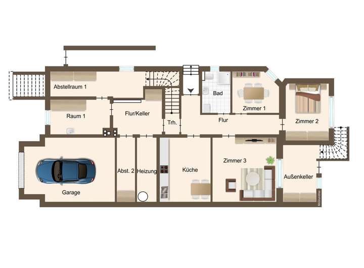 - Ausreichend Parkmöglichkeiten durch Garage und Außenstellplätze