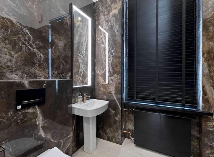 - Elegantes Gäste-WC mit edler Marmor-Ausstattung