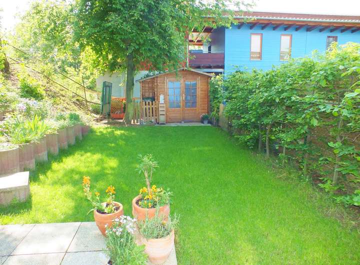 + Reihenhaus mit 5 Zimmern + 4 Schlafzimmer + 1 Badezimmer + 1 Gäste-WC + toller Garten + Geräteschuppen + Carport + Holzbauweise + Verfügbar ab 01.12.2025