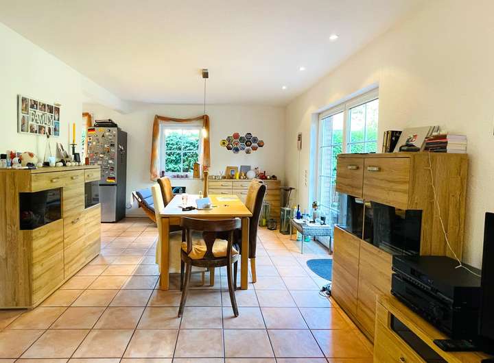 Individuelle Ausstattungsmerkmale: - Gartenhaus - Glasfaseranschluss Das Wohnhaus verfügt über eine Fußbodenheizung und bietet dadurch die Grundlage bei einem Heizungswechsel auf eine nachhaltige Wärmepumpe zu setzen. Küche, Wohn- und Essbereich sind offen gestaltet und bieten eine traumhafte Blickachse in den Garten. Alle Fenster verfügen über Außenrollläden, im Wohnbereich teilw. elektrisch. Das Interieur entspricht im wesentlichen dem Baujahr. Die PKW Garage gehört zum Kaufumfang.