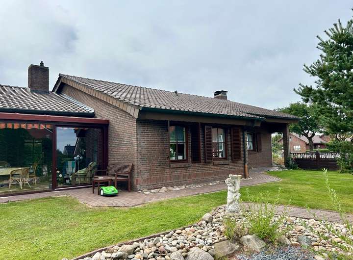 Dieses ebenerdige Einfamilienhaus überzeugt durch seinen rustikalen Charme und bietet ideale Wohnbedingungen für Familien.