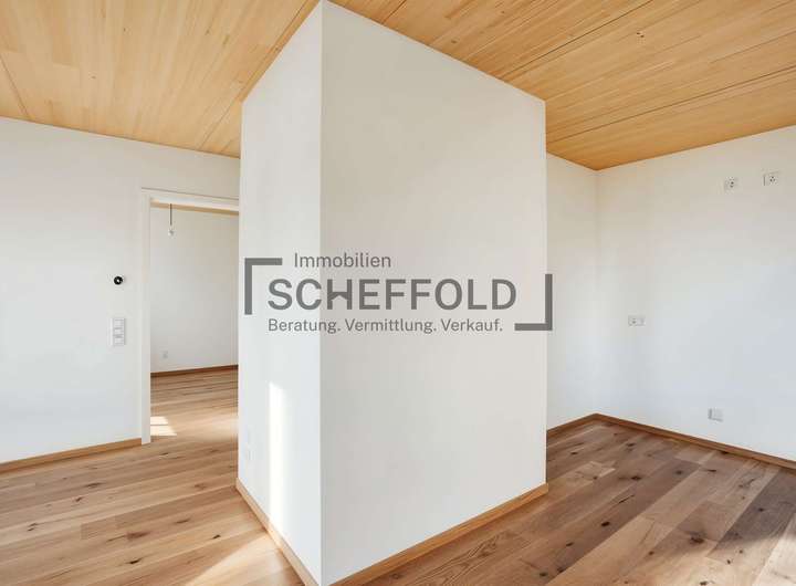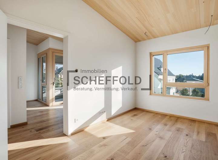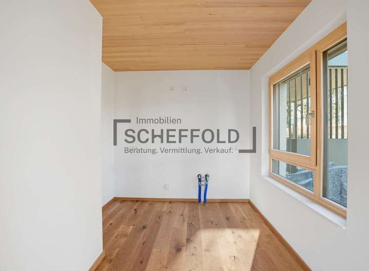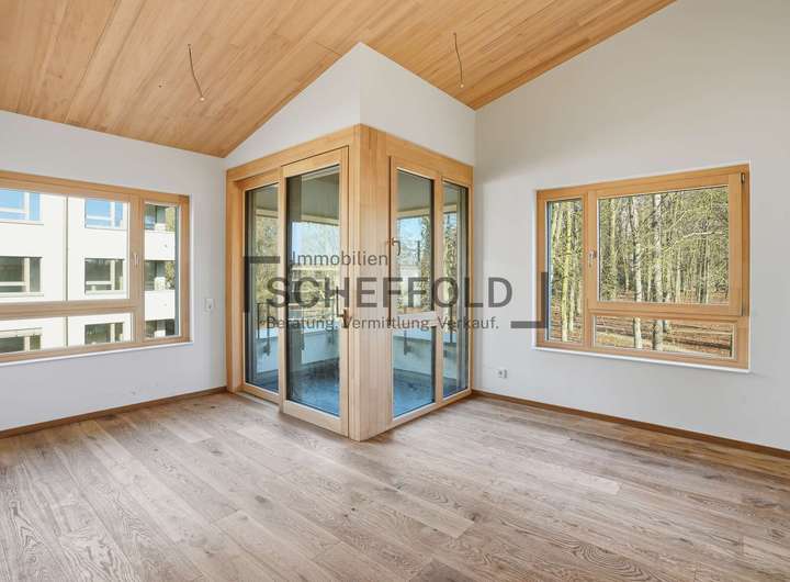 Jede Wohnung empfängt Sie mit einem Bodenbelag Ihrer Wahl, beispielsweise edlem Echtholzparkett, einer eleganten Decke aus Weißtanne und hochwertigen Holz-Alu-Fenstern, die nicht nur für eine langlebige Optik sorgen, sondern auch das Raumklima positiv beeinflussen.