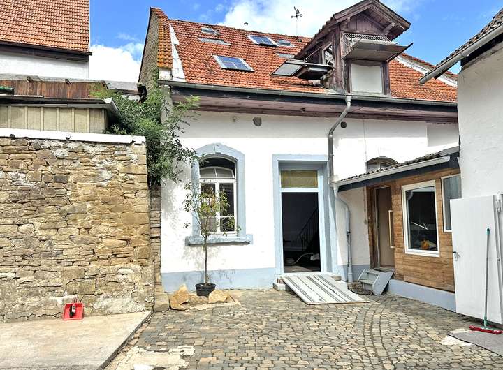 Liebevoll sanierte Hofreite sucht Sie als neuen anspruchsvollen Eigentümer. Sie suchen eine besondere Immobilie, ein attraktives Einzelstück, das durch Historie, Schnitt und Optionen besticht?! Dann wird Sie dieses Objekt garantiert begeistern. Mit viel Herzblut, Sinn und Verstand wurde hier saniert, renoviert und eine Symbiose aus neu aufgesetztem Wohnhaus & historischen Anbauten ins Leben gerufen. Im Wohnhaus verteilen sich 139 m² Wohnfläche auf 2 Etagen und 5 Zimmer. Parterre erwartet sie auf der linken Seite ein geräumiges, lichtdurchflutetes Wohnzimmer, ein Tageslichtbad sowie eine Küche mit angrenzendem Gewölbekeller. Im Obergeschoss befinden sich 4 Zimmer, einrichtbar ganz nach Gusto, ein weiteres Tageslichtbad und der Zutritt zur ansprechenden Terrasse mit weitem Ausblick. Vis-à-vis vom Wohnhaus im gegenüberliegenden Gebäude: weiterer großzügiger Wohnraum, inkl. Flügeltür & Original Holzdielen-Fußboden. Die dahinter teilweise gedämmte befindliche Scheune bietet auf 3 Etagen Ausbaupotenzial & mannigfaltige bauliche Optionen in jeglicher Hinsicht. Über den mit Kopfstein gepflasterten Hof gelangen Sie in den weitläufigen ehemaligen Tanz- und Ballsaal mit über 80 m² Fläche zum angrenzenden Gartenbereich. Über die geschwungene Treppe gelangen Sie bequem ins OG & DG was ebenfalls erhebliches Potenzial bietet. Weitere Nutzfläche für Hobby, Werkstatt und ein Heizraum runden dieses einmalige, geschichtliche Immobilienangebot mehr als ab. Mit Verlaub, alle weiteren Einzelheiten & Details der Hofreite hier zu benennen, würde schlichtweg den Rahmen sprengen. Hier müssen Sie live vor Ort besichtigen, sehen, fühlen und erleben und dieses äußerst interessante Einzelstück auf sich wirken lassen. Vereinbaren Sie deshalb noch heute Ihren persönlichen Besichtigungstermin vor Ort. Wir vom Engel & Völkers Team Bad Kreuznach freuen uns auf Sie!