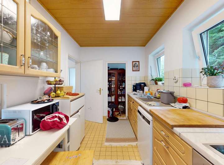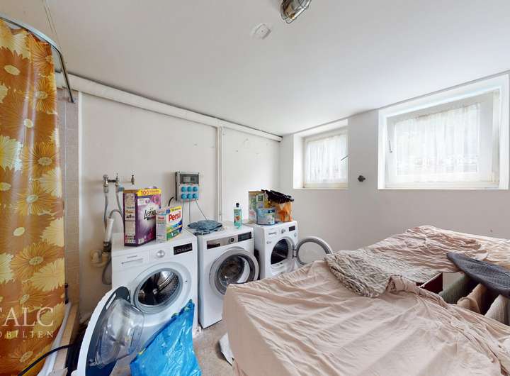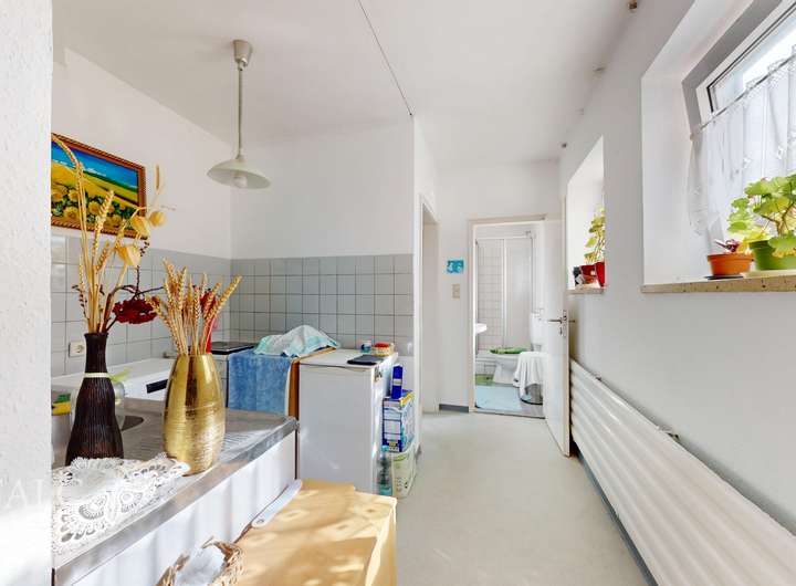 Der zusätzliche Stauraum im Dachgeschoss sorgt für Ordnung und Struktur. Der Keller des Hauses bietet nicht nur Stauraum, sondern auch einen Werkstattraum und einen Waschraum, was den Alltag erleichtert. Des weiteren stehen 2 Garagen zur Verfügung mit jeweils einem Stellplatz davor.