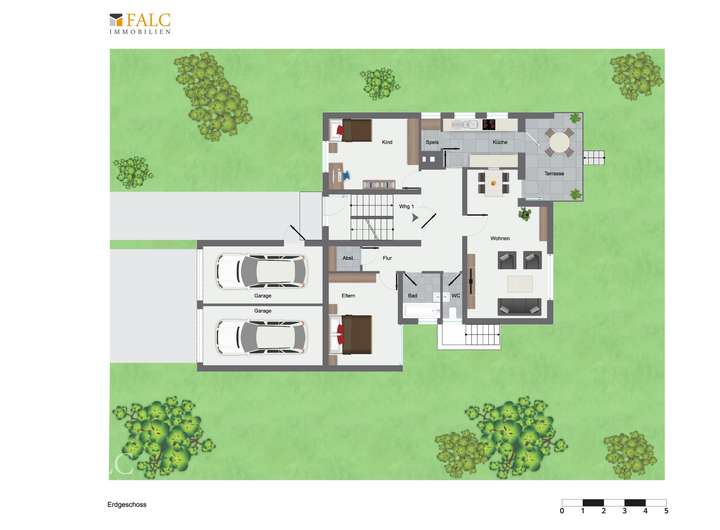 - 2 Garagen, 2 offene Stellplätze