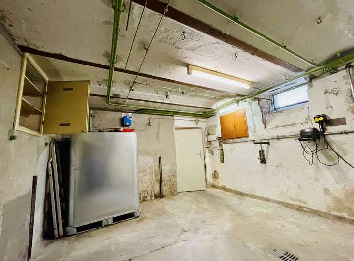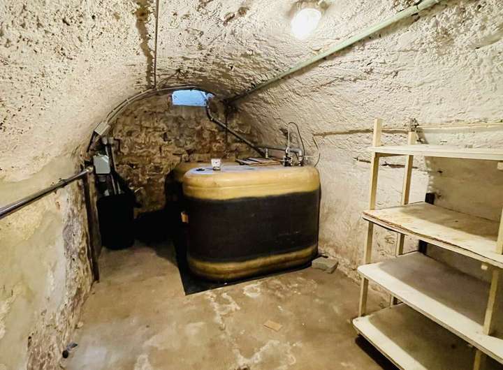 Unterhalb der Küche befindet sich ein Kriechgewölbekeller, worin momentan die Öltanks untergebracht sind.