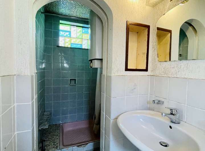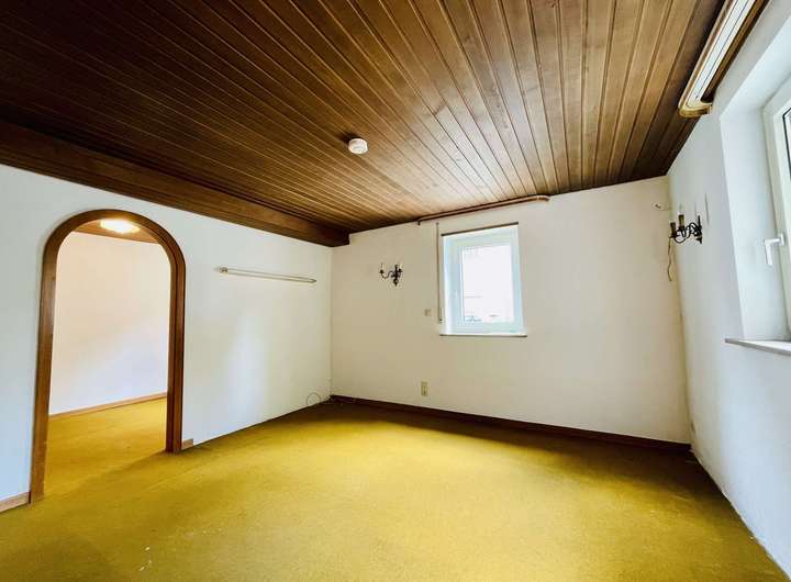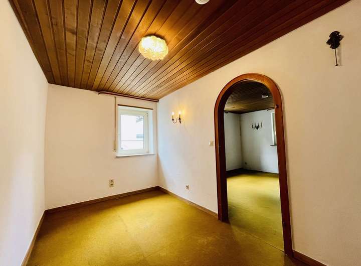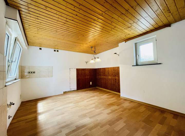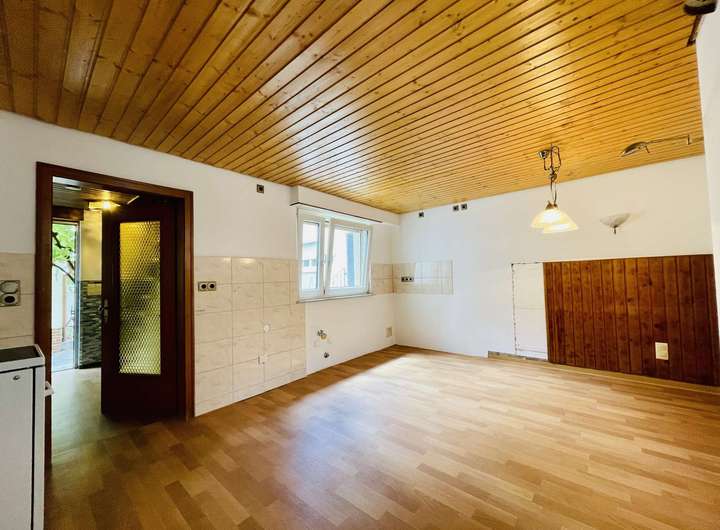 Im Erdgeschoss befinden sich zwei Zimmer und eine Küche sowie ein kleines Duschbad.