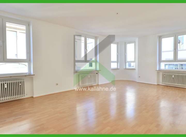 Der ca. 30 m² große Wohnbereich überzeugt durch seine Helligkeit und Großzügigkeit und einen hübschen Runderker. Zahlreiche Fenster sorgen für ein angenehmes Wohnambiente und bieten viel Tageslicht. Die angrenzende Küche ist ebenfalls großzügig geschnitten und bietet ausreichend Platz für einen Essbereich.