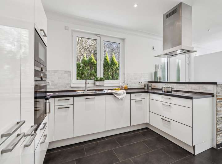 - Halboffene, hochwertige Einbauküche mit E-Geräten namhafter Hersteller (bspw. Siemens)