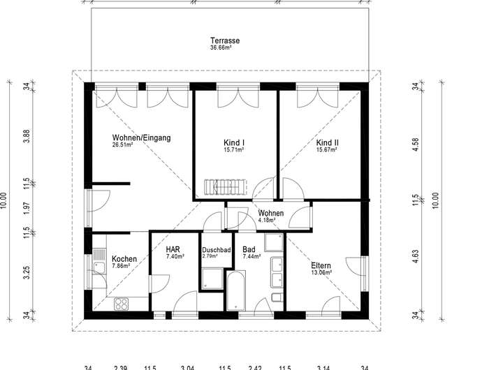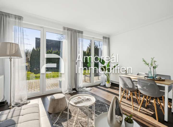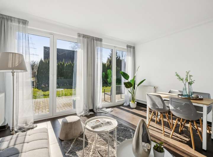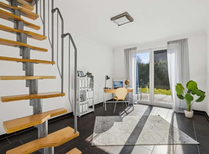 Beim Betreten des Hauses werden Sie von der offenen Wohnküche, welche clever in den Wohn- und Essbereich integriert ist, herzlich in Empfang genommen. Die bodentiefen Fenster im Wohnbereich sorgen für ausreichend Tageslicht und ein schönes Raumklima. Von hier aus gelangen Sie auf die großzügige Süd-Terrasse, welche zum Entspannen und Genießen im Freien einlädt.